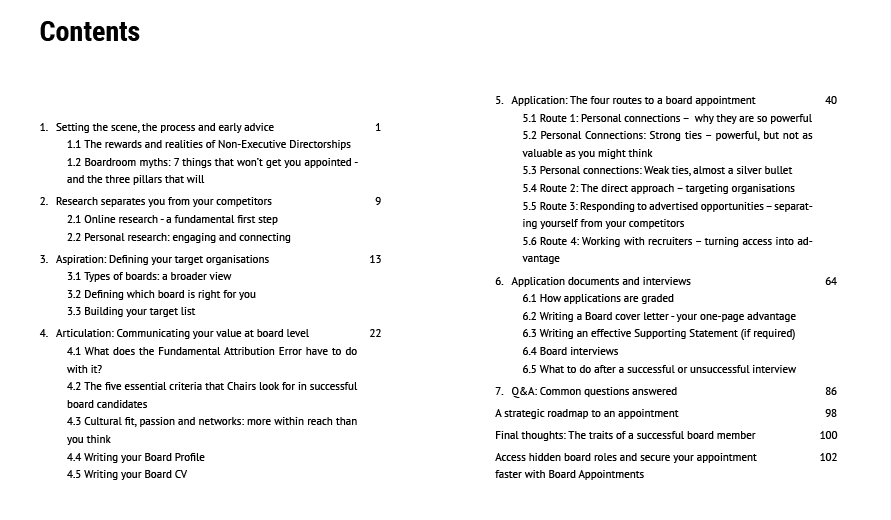 Gaining a board appointment is highly competitive. Too many aspiring Non-Executives waste time chasing advertised roles that rarely deliver, or sending out countless applications for positions that don’t exist. The result is frustration, rejection, and eventually giving up. It doesn’t need to be this way. Every year, thousands of board seats are filled – many through hidden routes and overlooked processes.